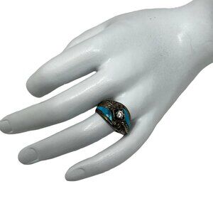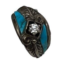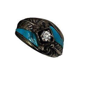 Southwestern Ring 925 Sterling Silver Turquoise Clear Stone Handcrafted Vintage