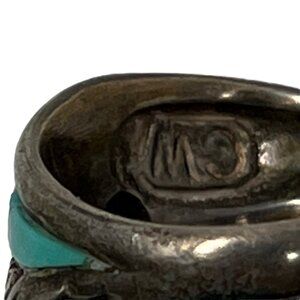 Condition: The turquoise portions of the ring appear to be cracked. Ring is marked sterling and CW.