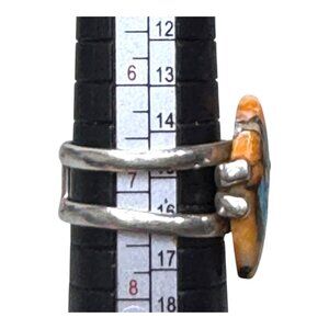 Southwestern Sterling Silver Marquise Inlay Ring Turquoise Spiny Oyster Shells 7
