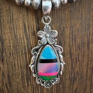 ❤️ Southwestern Stunning Aurora Opal Multi-Stone Inlay 925 Pendant 7.29gm