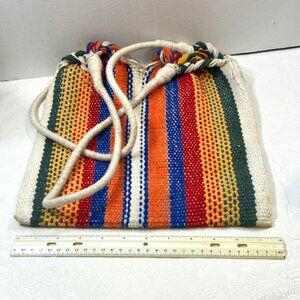 Southwestern Style Striped Woven Cotton Hobo Shoulder Bag Tote