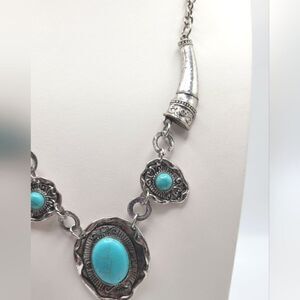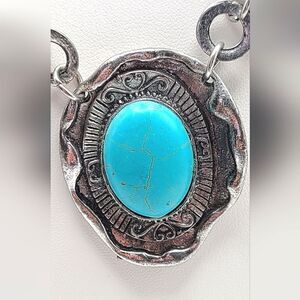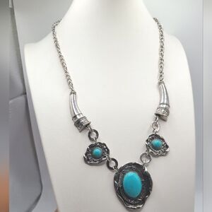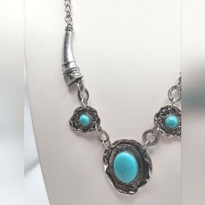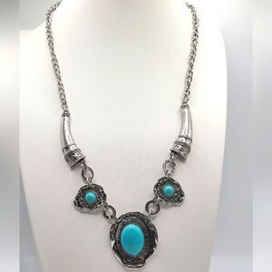 Beautiful southwestern style silvertone and faux turquoise necklace