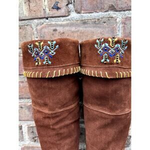 Southwestern Tall Moccasin Wedge Beaded Leather Festival Boots NWOT