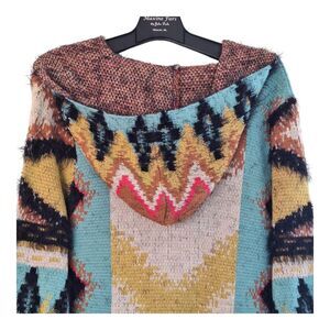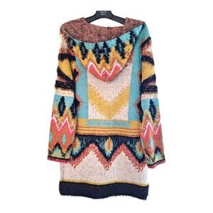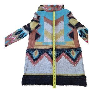 Southwestern Tribal Eyelash Sweater Hooded Cardigan Long Line MaxSport weighty L