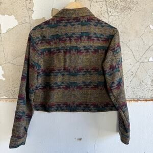 Southwestern Trucker Jacket Cropped Boho Western Aztec Tapestry Bomber Womens S