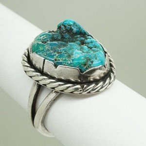 Southwestern Turquoise Nugget Split Shank Ring Sterling Silver Size 6.75
