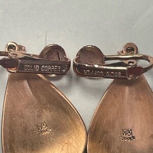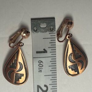 Gorgeous Vintage Southwestern Signed WM Copper Wheeler Co Pierced Earrings. These measures 1 1/4 of an inch tall and is 3/4 inch wide. 100% copper. Good vintage condition.