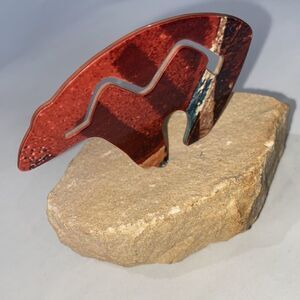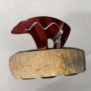 Southwestern Zuni Bear Petroglyph On Sandstone Base Metal Paperweight