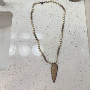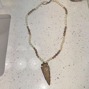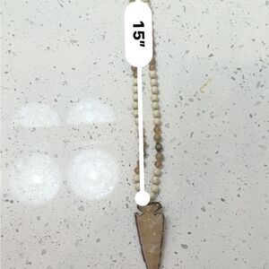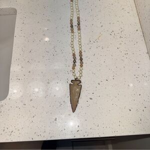 Long gold accented arrowhead Bohemian/southwestern style necklace with neutral colored beads 18” drop (36” total)