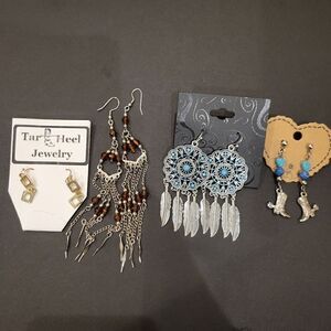 In great condition. Cowboy boot earrings have post backs. The others are Shepard hook earrings.