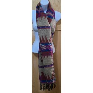 Southwestern Patterned Scarf With Fringe 19x76 Inches Aztec tribal geometric