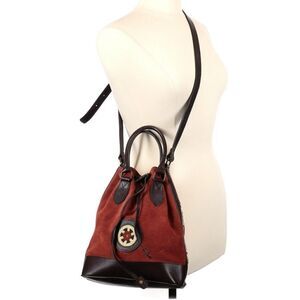 Boho Southwestern Suede Leather Beaded Crossbody Bucket Bag