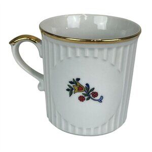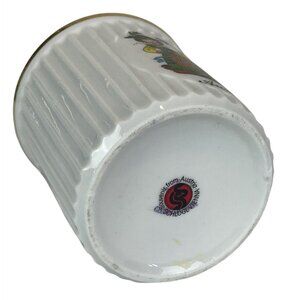 Crafted in Vienna, this porcelain mug features a charming Austrian boy and girl design, accented with a gold-rimmed edge and delicate fluted details.