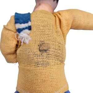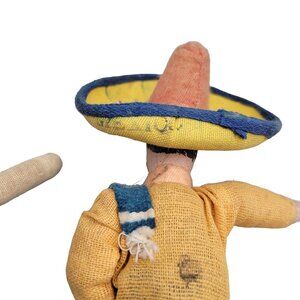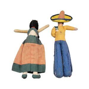 Two 1940's or 1950's hand painted dolls made of fabric with traditional Mexican clothing. Marked Mexico on the back of the sombrero, this cute couple has makers marks, but they are unknown.