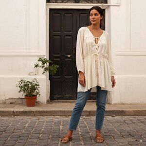 Sovere Desire Babydoll Smock Mini Dress in French Vanilla Size Small NWT