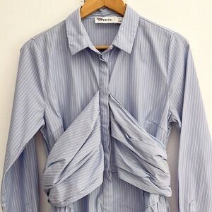 Sovere Evermore Corset Shirt Dress Blue White Striped Mini Dress