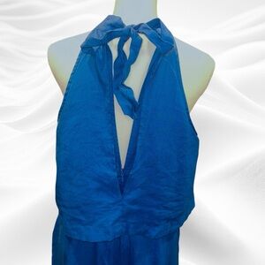 Sovere Large Linen Choker Halter Cut out Midi Dress Cobalt Blue
