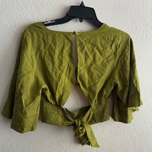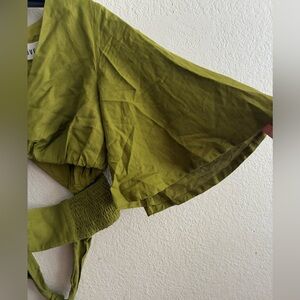 Sovere Women’s Green Bell Sleeve Wrap Linen Blend Top S