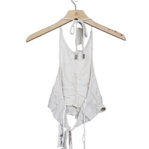Sovere Womens Small Retold Hankey Hem Linen Blend Halter Top Tan NEW