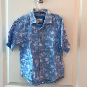 Caribbean Style Shirt, Light Blue with white Palm Trees and Surf Bourds