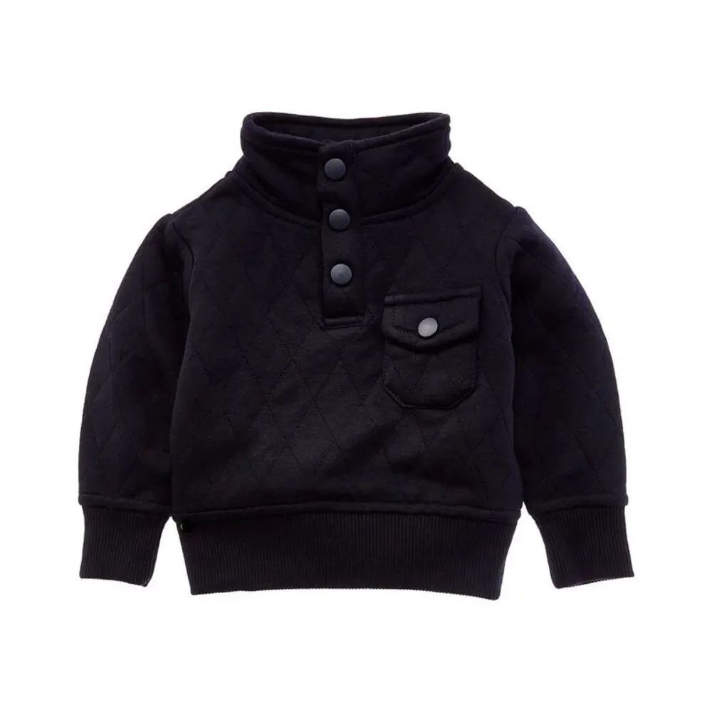 Color/pattern: navy Design details: stand collar, and ribbed trim Button placket 100% polyester Machine wash Imported