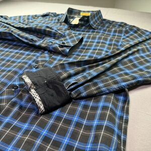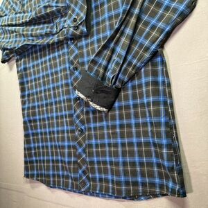 Sovereign Code Shirt Mens L Plaid Blue Flip Cuff Skate Surf Y2K Streetwear USA