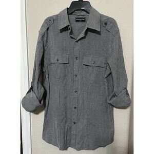 Sovereign Code Shirt Mens M Military Grey Pinstripe Button Up Collar Long Sleeve