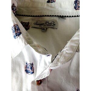 Sovereign Code White Short Sleeve Tiger Print Button Up Shirt Size XL Pink Blue