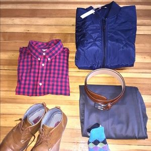 Brand New blue quilted bomber jacket. Perfect for fall. Pair with crisp button up shirt and chino to complete the look. Make an offer!
