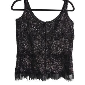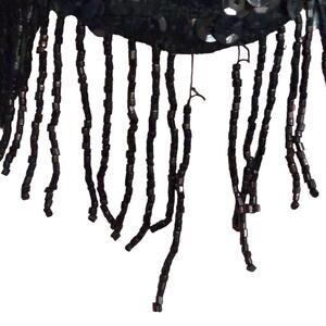 Sovereign Womens Blouse Black Sleeveless Fringe Sequined Lambswool Angora 36