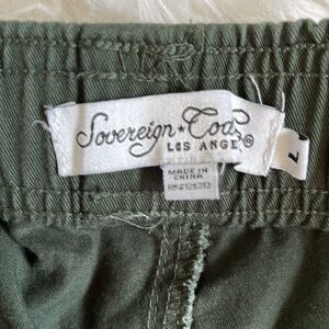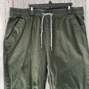 Olive green utility jogger pants with elastic waistband and drawstring. Elastic ankle bands, 2 front pockets and 1 back pocket. excellent condition!