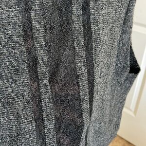 So versatile. Can be thrown on over anything. Pretty way to dress something up. Front is longer so you can wrap around your neck, has a pretty sheer black trim and same black trim down center of the back. Care tag is pictured.