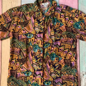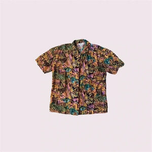 Sovie 100% silk abstract pattern men’s button up shirt. In great preowned condition. Super soft silk. Fun shirt to add to any outfit. No stretch.