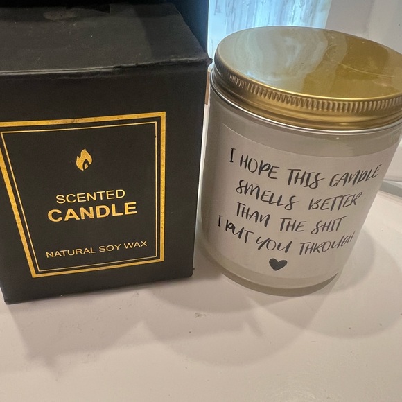 Soy candle says “I hope this smells better than all the shit I put you through”