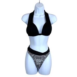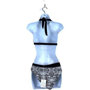 Soybu Black Bikini Athletic Bottom LARGE Geometric Print Modest Sporty NEW