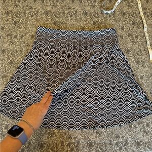 Stylish mini skirt with intricate wave design. Ideal for everyday wear. Made from a poly knit. Pull on.