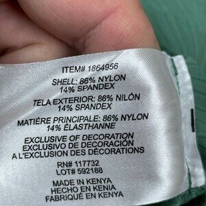 Two Soybu t-shirts featuring a nylon-spandex blend, moisture-wicking fabric, and striped pattern. Includes green and gray shirts. Lightweight and stretchy for active use.