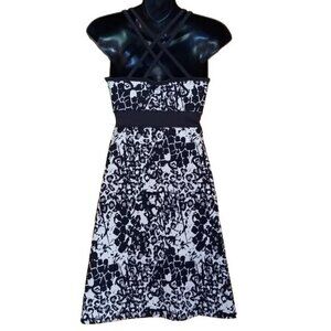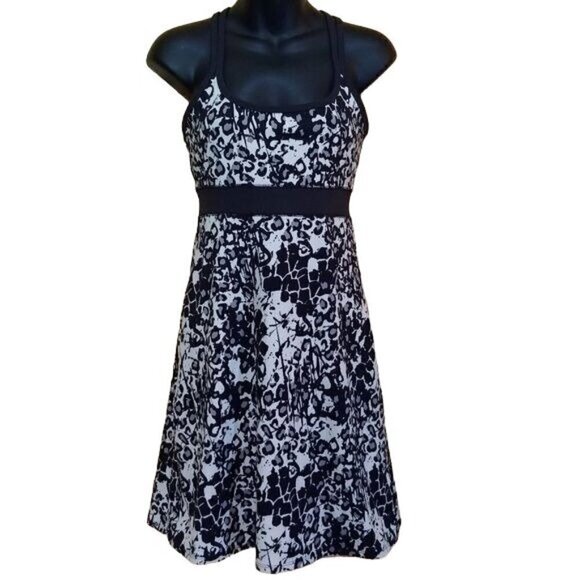 Soybu Strappy Tank Dress Womens XS Tahiti Print Athletic Shelf Bra Black White