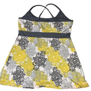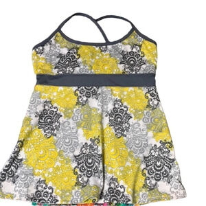 Soybu Strappy Tank Top women's medium with bra, grey and yellow paisley, pit to pit 16", length 26", great condition, smoke and pet free home