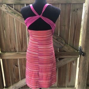 Soybu Sporty Dress, Wicking, SPF 50 & Built-In Shelf Bra For Support with Removable Pads. Colors - Pink, Purple, Peach & White. Ultra Breathable Lightweight Quick Dry Fabric & Comfortable Shoulder Straps That Crisscross in Back. Athletic Tennis Yoga or Workout Dress. Features Fabric Designed to Block UV Rays so You Can Enjoy an Active, Outdoor Lifestyle Safely in the Sun. Flattering Fit & Drape.
