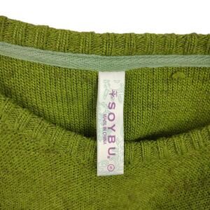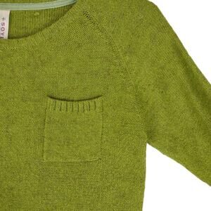 Soybu Women's S Green 3/4 Sleeve Pocket Sweater Wool Alpaca Blend Preppy Classic