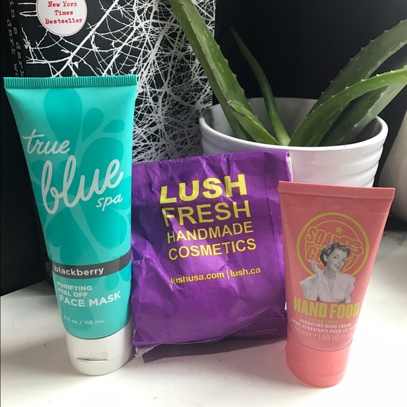 Includes one LUSH Bath Bomb in Butterball, one True Blue Spa Purifying Peel Off Face Mask in Blackberry, and Soap & Glory Hand Food in Sugar Crush. Bath Bomb was given to me as a gift but city living doesn't allow me to have a tub.โน๏ธ The other products listed have both only been used once so there is plenty of product left. I'm open to offers!๐๐ผ