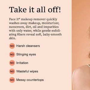 This safe, reusable makeup removal cloth instantly peels away makeup, sweat and grime using only warm water.