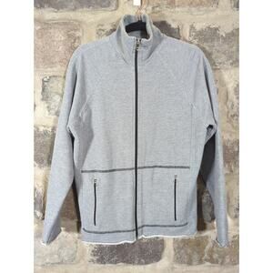 Spa By Chico's Sweatshirt Woman's Small Gray Full Zip Raw Hem Athletic