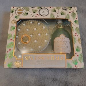 Spa Essentials Exfoliating Body Brush And Moisturizing Eucalyptus Mint Body Oil