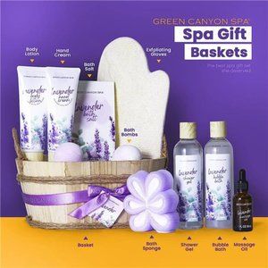 Spa Gift Baskets for Women 11pcs Lavender Bath Gift Set with Body Lotion