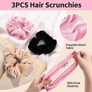 Makeup Headbands & Hair Scrunchies Set: Includes 3pcs spa headbands and 3pcs hair scrunchies, come in three colors-Pink & Black & Creamy White, help hold all your hair up when washing face, brushing teeth, wearing makeup, doing skincare etc.. perfect gift for women and girl.