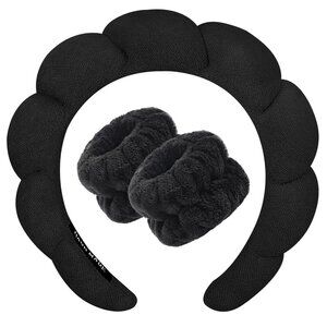 SPA HEADBAND and WRISTBAND MATERIAL: Spa headband and wristband set is the perfect solution.Bubble Spa headband for women the sponge lining used and the terry cloth covering the surface. These skincare headbands have a grwm water absorption function and can be used when you are washing your face, skincare or makeup. The wristbands are made of quality coral fleece.And wristbands also have good elasticity, can be stretched to fit your wrist better.Patent No.: US D1018980 S.Preppy skincare headband,grwm headband