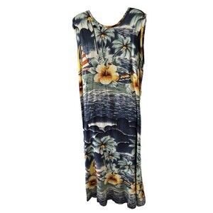 Spa Tropical Pattern Maxi Shift Dress Flowers Palm Trees Read Description 4 Size