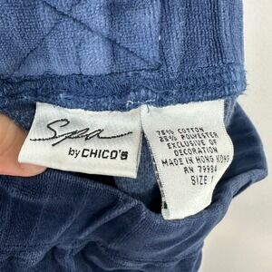 Spa by Chico's Womens Pants L Blue Velour Lounge Y2K Cozy Retro Softcore Quiet Luxury